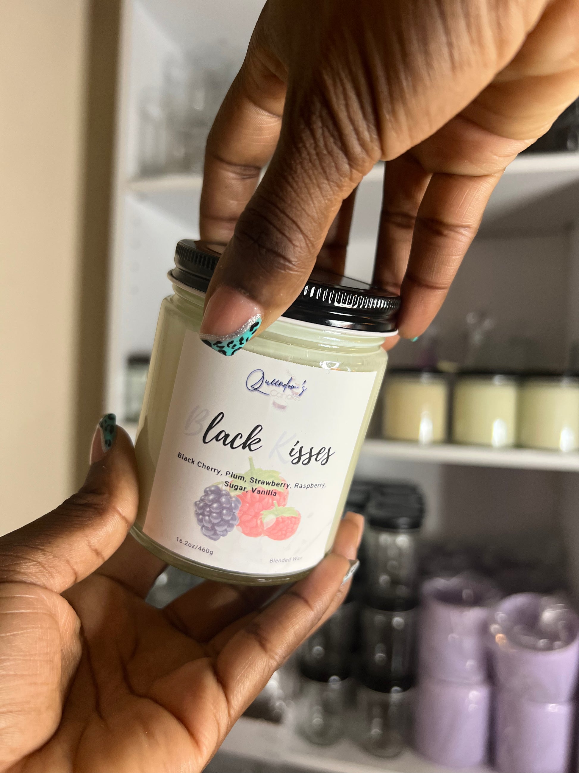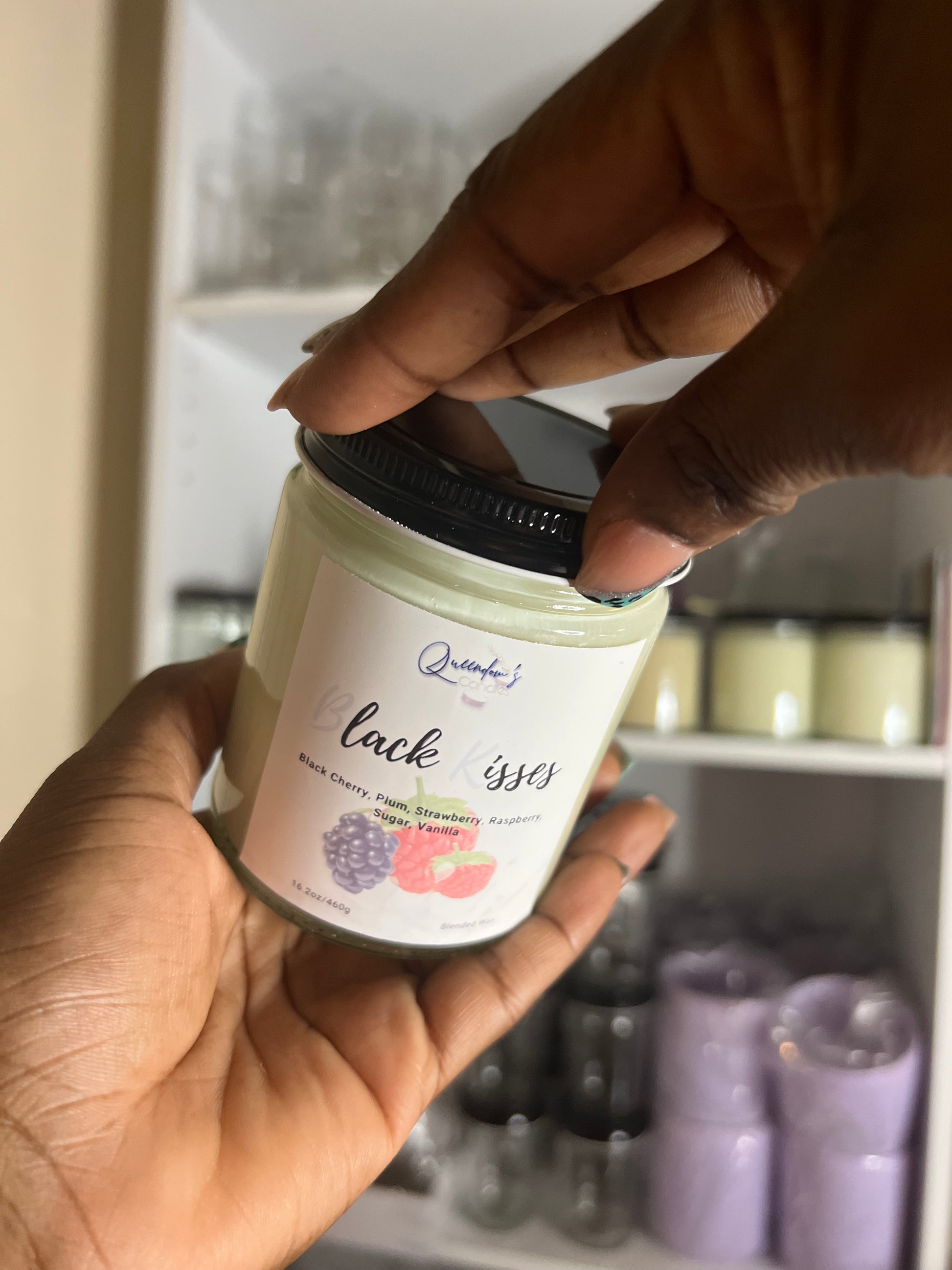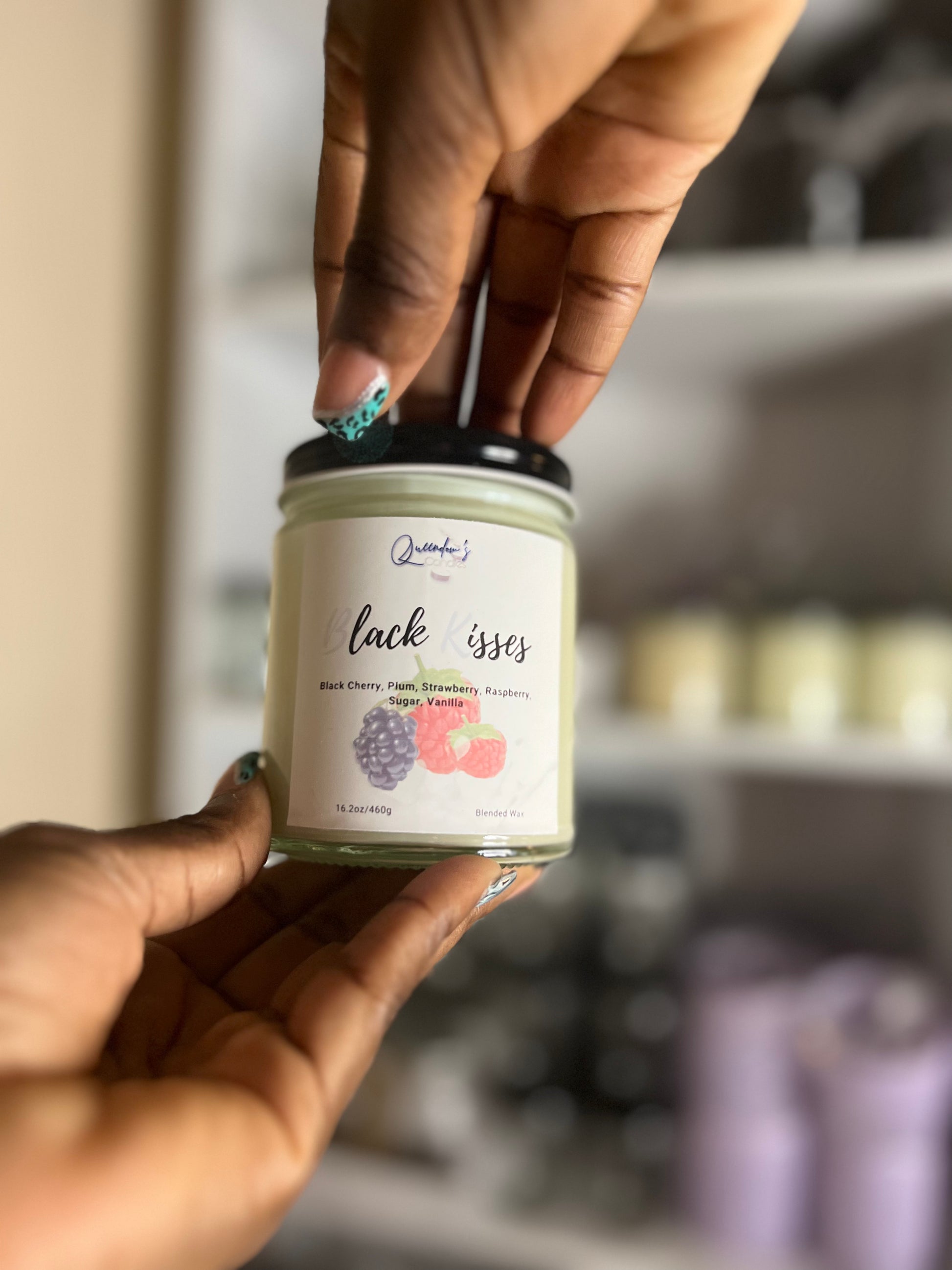 FRAGRANCE DESCRIPTIONS: Indulge in the full-bodied aroma of ripe black raspberries, pink florals, and warm vanilla - this powerful candle will easily conquer the air with its sweet juiciness! Black Kisses is a remarkably fragrant candle that will fill any room with a wonderful scent, providing the perfect atmosphere for any occasion.